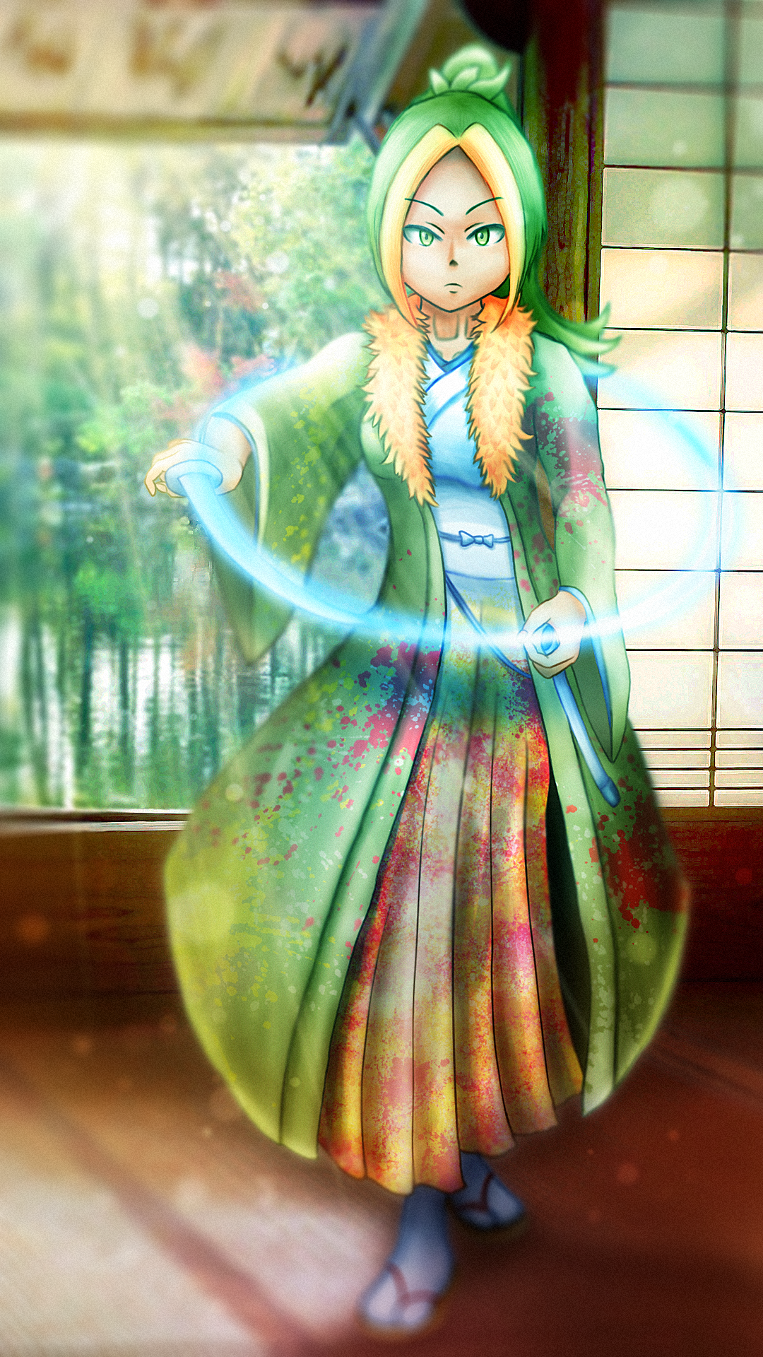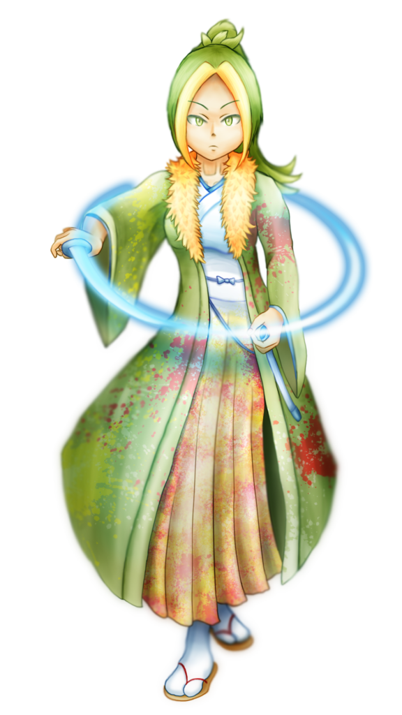 キュワワーの花をインクの水しぶきで表すという アイデアを形にしたくて、主要なストーリーには 絡ませないままアイデア優先で形にしてしまった子です。 刀で円を描いてリングを表したり、 その周りに咲き乱れる飛沫を花のようにみせたり。 南国のイメージの強いキュワワーを 和風にまとめることができたのも満足度高いです。