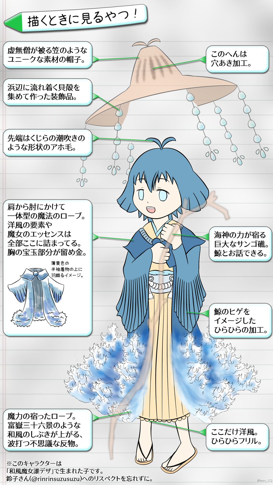 鈴子さんの「和風魔女誰デザ」で生まれた子。 設定もデザインもほぼ一日で固まったわりに、 綺麗にまとまっているお気に入りの子。 ありがたいことに自宅でもだいぶ人気があります。