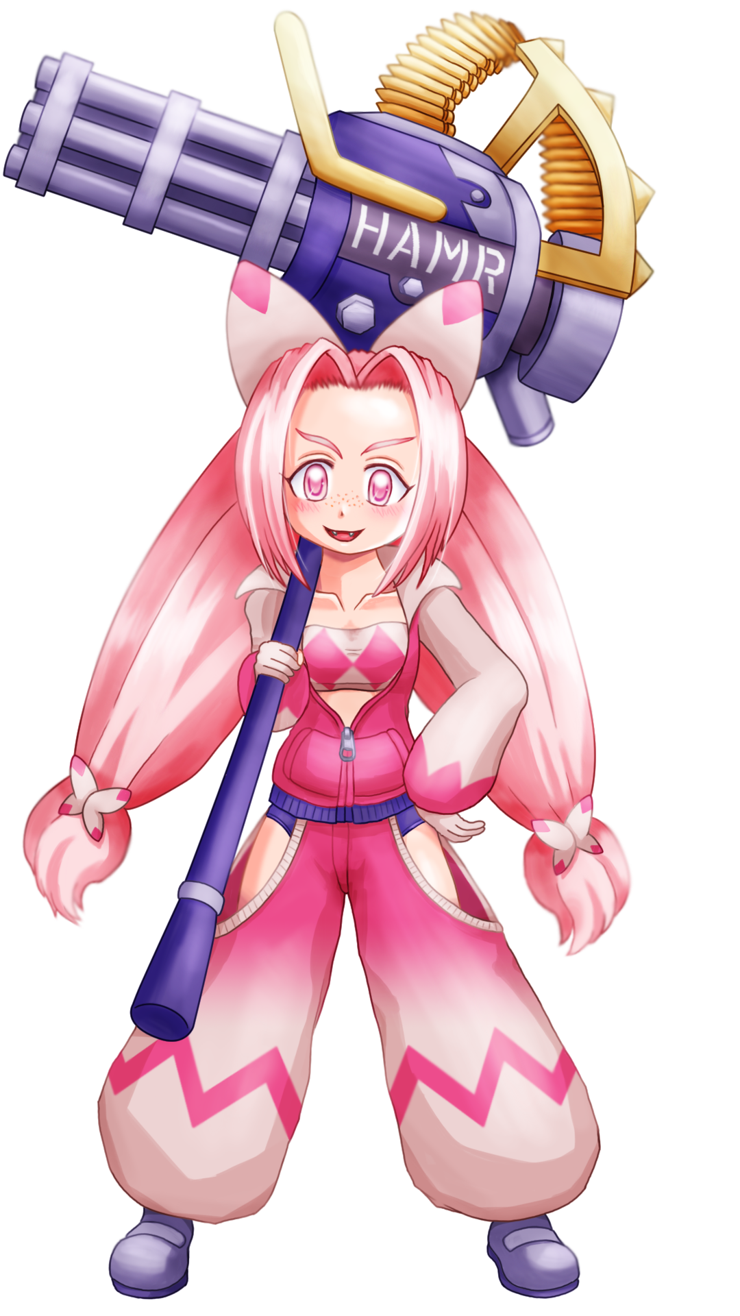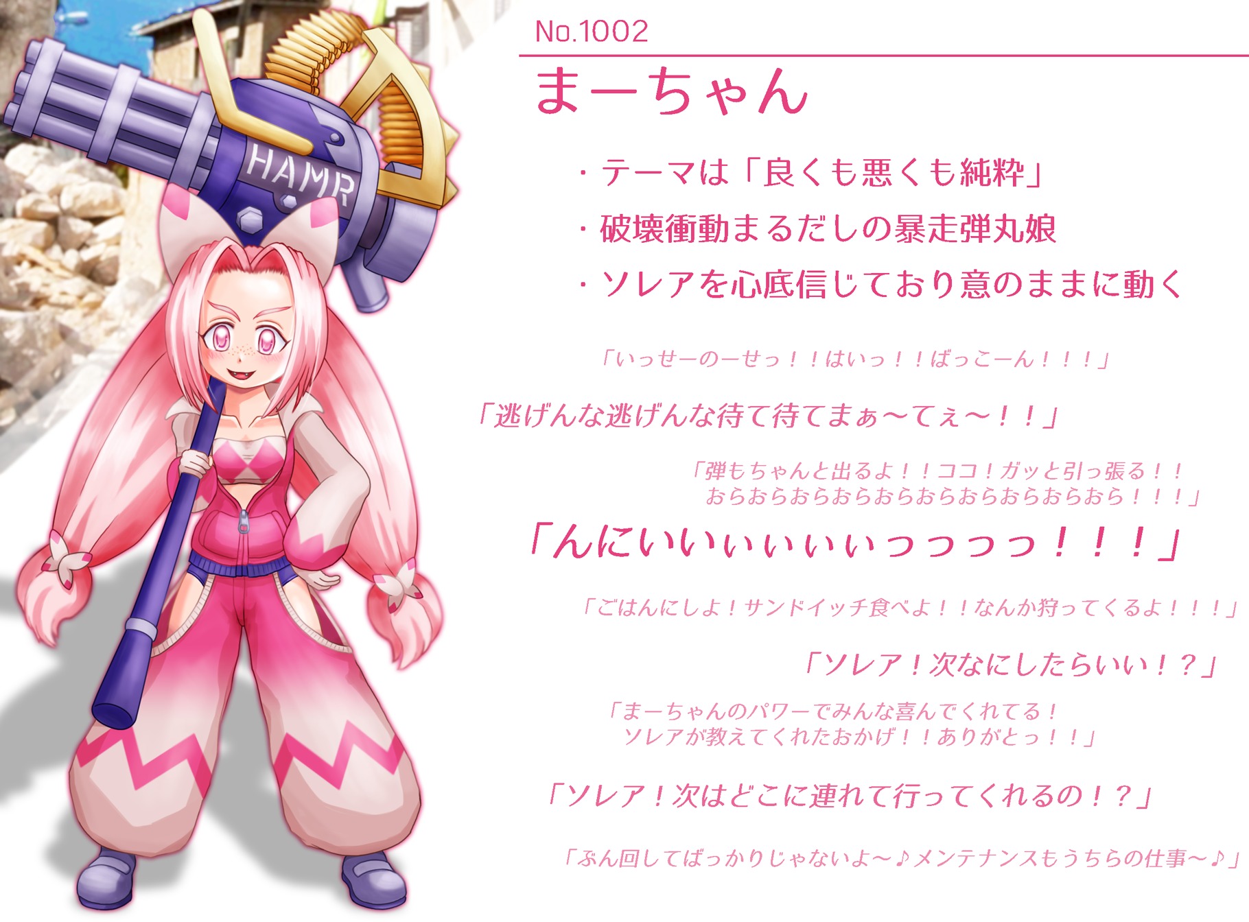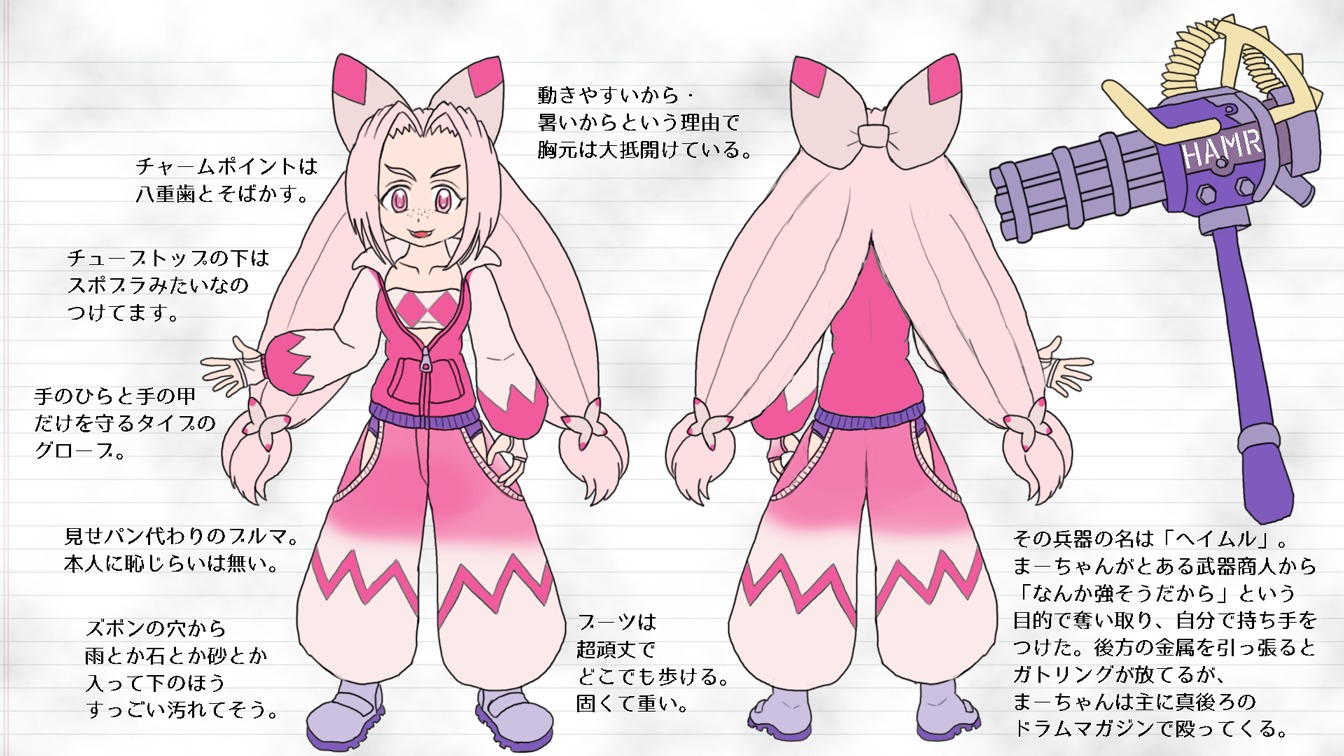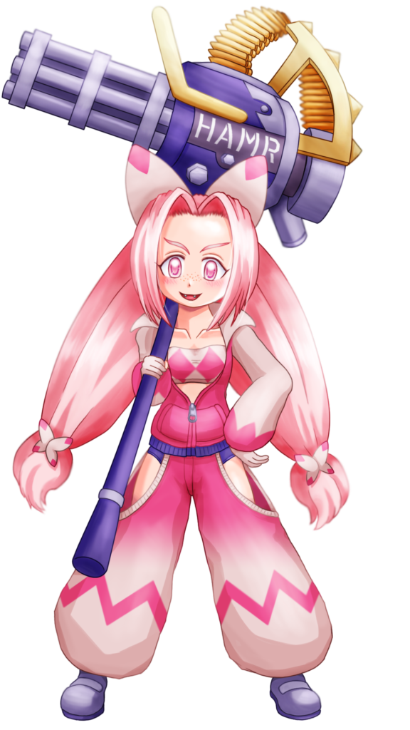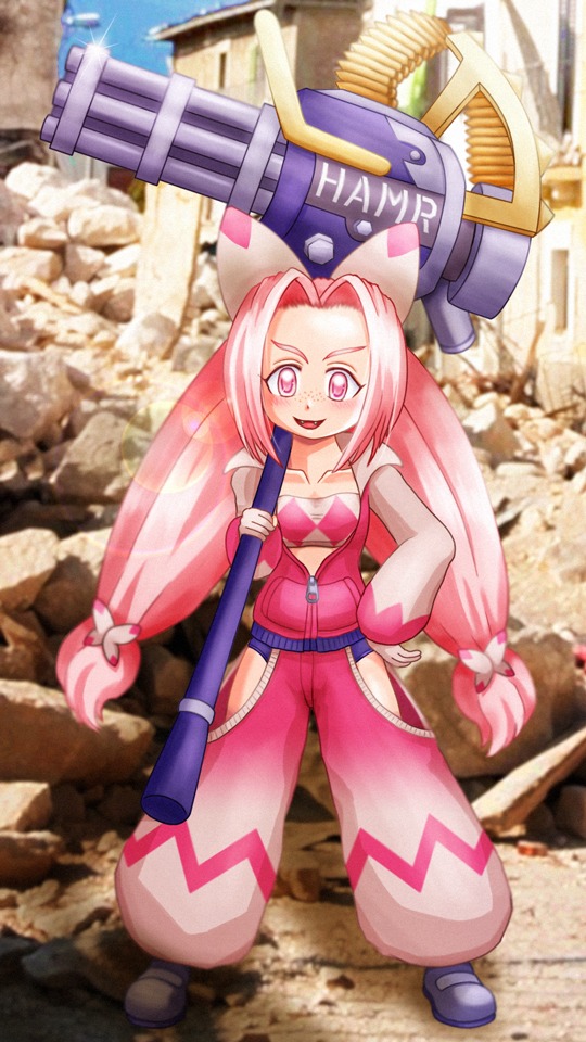 ところで手持ちの巨大な兵器「HAMR(ヘイムル)」だが、やはり他人から奪ったものを改造したものらしい。あまり姿を見せぬとある武器商人が運んでいたキワモノを無理やり奪い取って欲望のままに振り回していた…というのが真相。