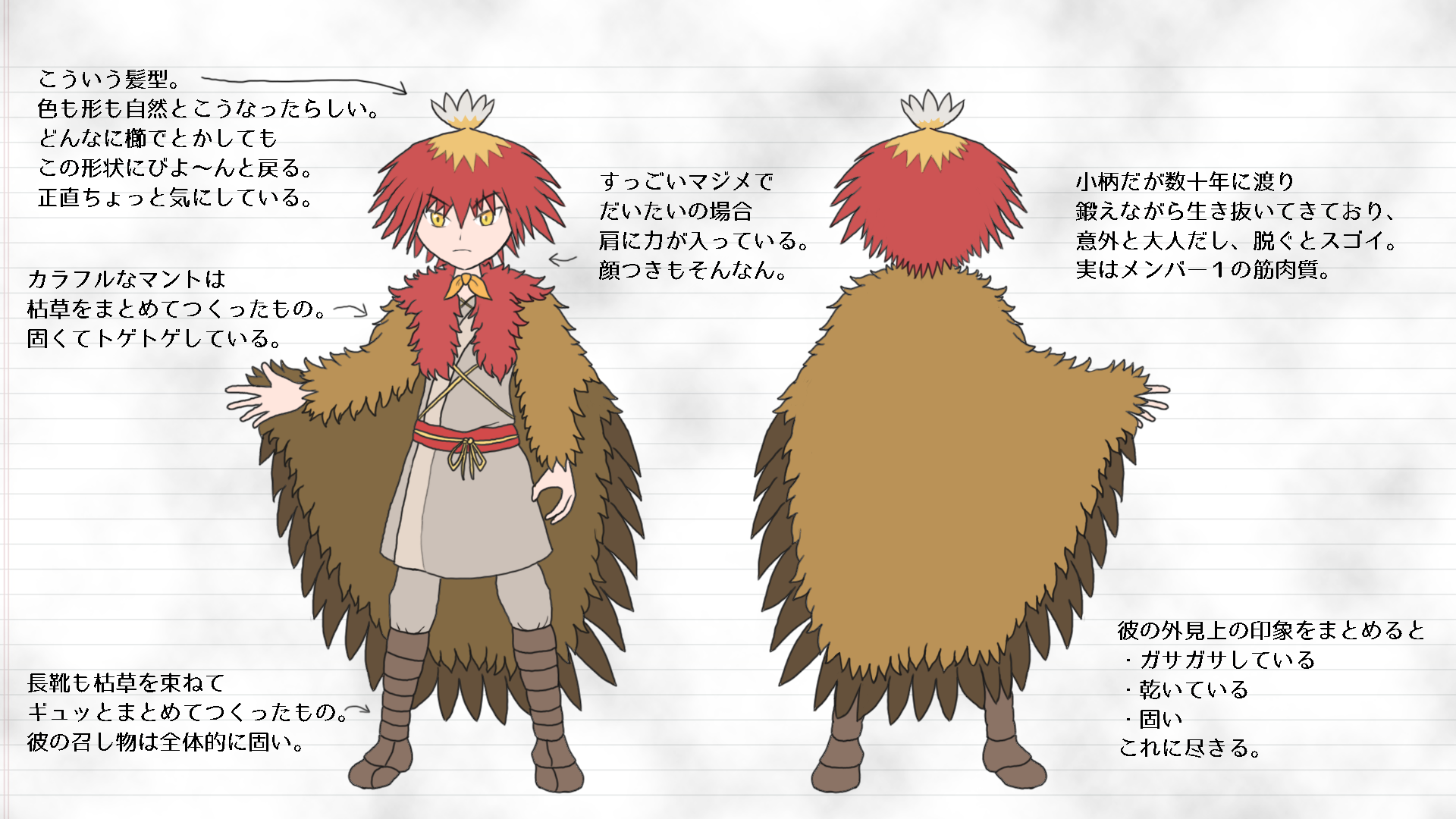 不遇な運命に生まれたわりに信仰心が強く、島の各地に住む神々の元を訪ねまわり、なぜ自分のような異能者が生まれたのか、その理由を追求するために旅を始めた。