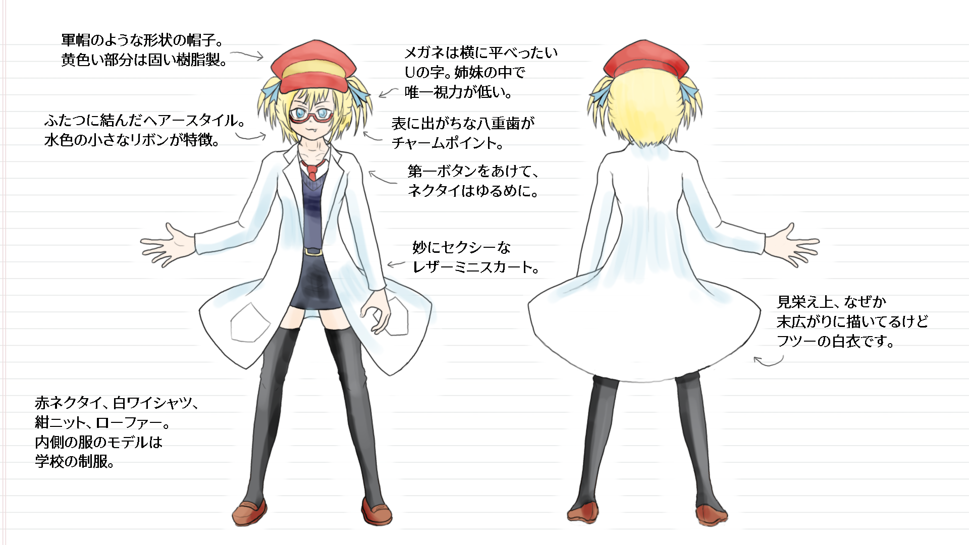 「金髪と赤いアクセサリー」という 好きな組み合わせで練ったキャラその4。 メスガキってどんなだ…と思いながら練りました。 いうほどガキ感は無いけどめちゃ生意気っぽくなったので満足。 うちのこでは大変珍しく眼鏡っ子です。