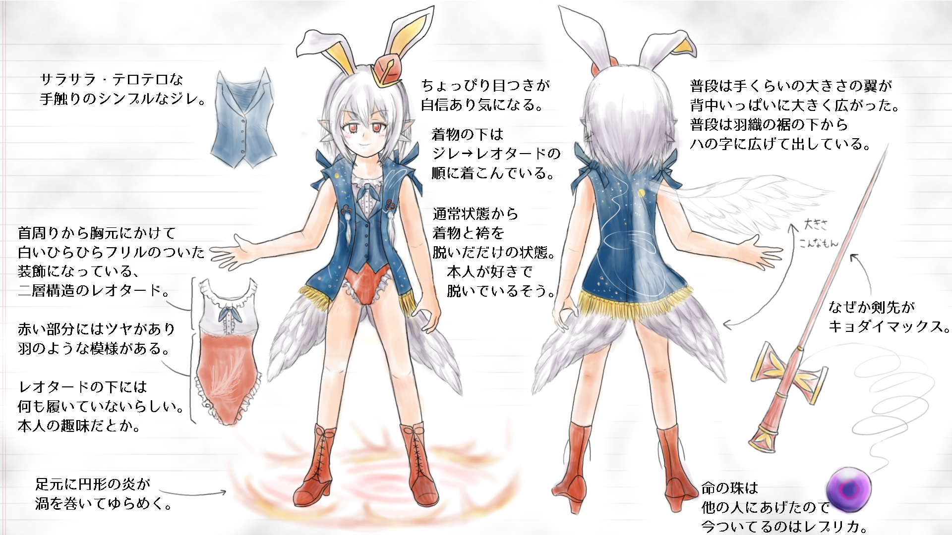 なお、戦闘中はずっとレオタード姿だが、オフのときはこれまで通り和風スカート姿である。